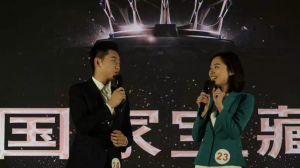 图为公司选手吴冠宇、闫金茜进行主持展示