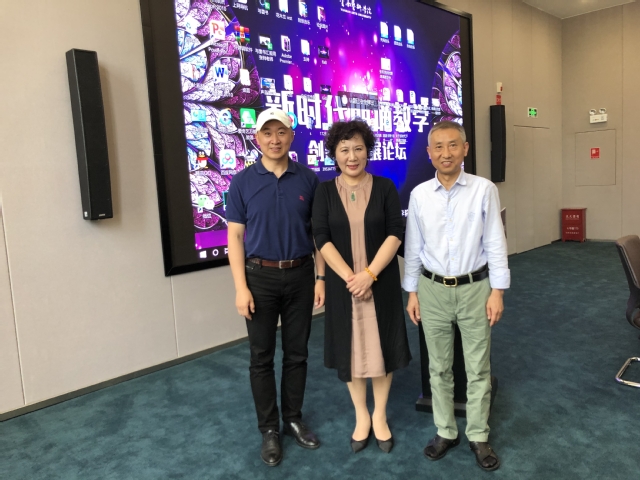 图为公司包磊副教授与另两位发言嘉宾中国传媒大学马谛教授、浙江传媒公司刘力军教授合影
