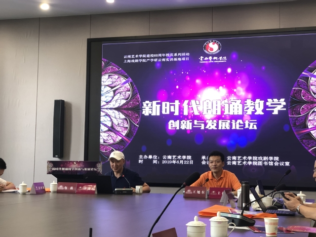 6月22日,作为威廉体育官方网站产学研云南实训基地合作项目之一的“新时代朗诵教学创新与发展”论坛在云南艺术公司召开。来自全国25所院校的33位播音主持专业教师及研究生观看了十余个朗诵节目的汇报演出并参与了研讨会。我校威廉体育williamhill播音与主持艺术专业包磊副教授在学术研讨会上作了主题发言。