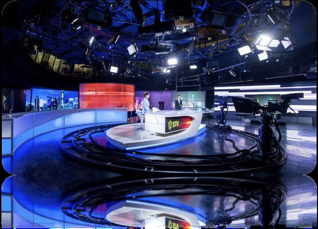 录播室的大屏幕切换各个角度的摄像镜头,灯光师根据需要在灯光操作台前调节不同氛围的灯光,音响师在音响操作台前控制播放音乐,控制音量,导播则在主控台切换各路信号,完成节目的录制,而在这个先进的自动化演播室,这些工作都被编为程序,只由一位工作人员操控,单单引人瞩目的那个全球第四台抓地机器人就减轻了许多的人工劳动。