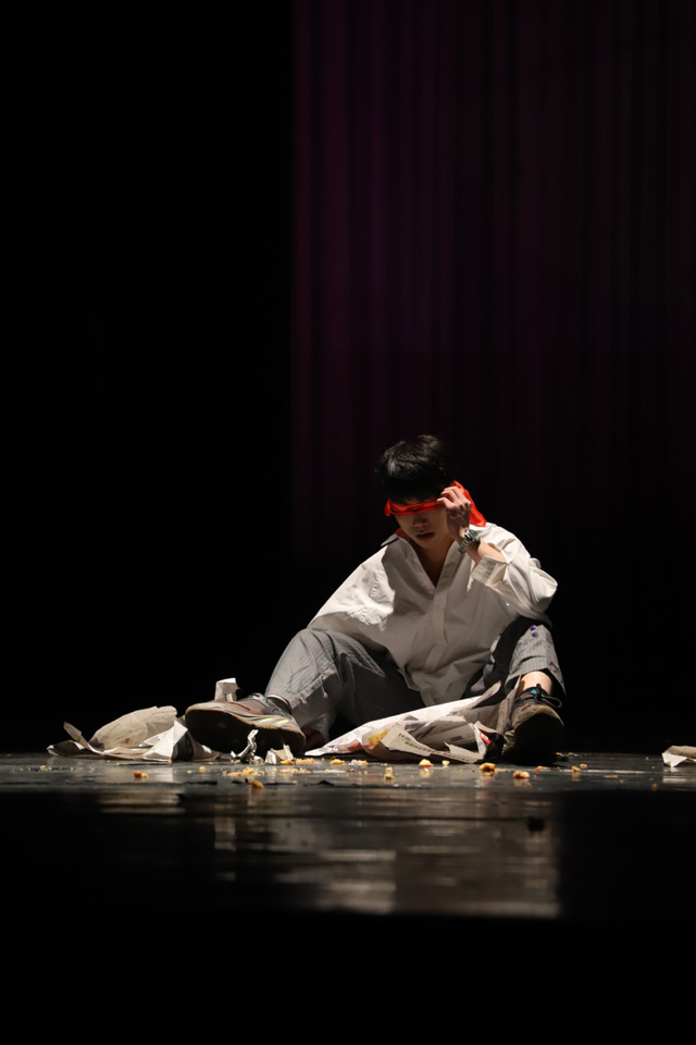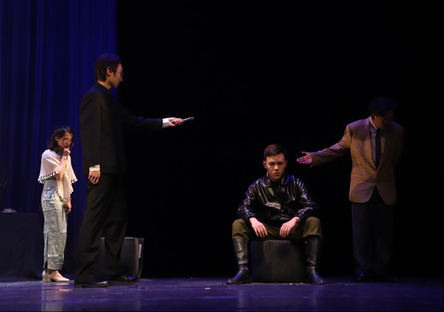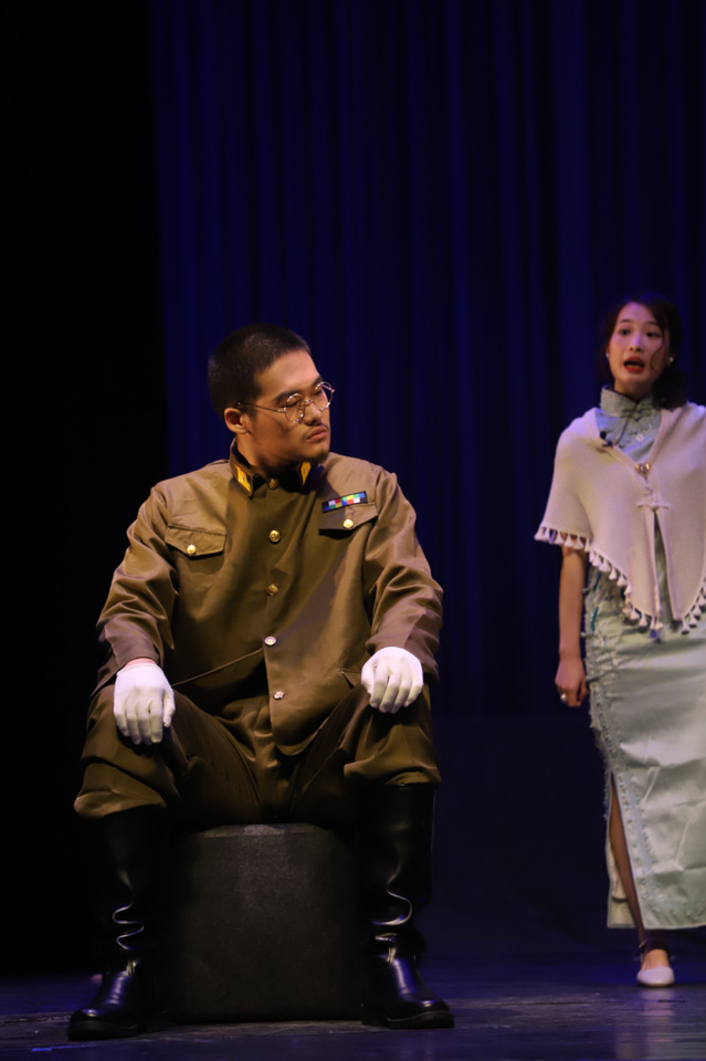 《叁·夜》包含了三出独幕剧,分别改编自电影《风声》、孟京辉先锋戏剧《恋爱的犀牛》以及经典大戏《雷雨》。此次汇演,是《导演理论与技巧》这门课程于教学实践形式上的突破,它重新解释了三个剧目的主题和人物动作,在剧作结构上做出了重大调整。如独幕剧《风声》,在剧本方面,将全片时长120分钟的电影整合改编为40分钟的独幕剧;在舞台形式上,将整片舞台划分为五个小区域、两个大区域,同时通过灯光方面的处理,强调了每个区域的独立性,又互相有连结。剧本前半部分是原创,我们希望可以在一上场就使观众了解人物关系。结合老师的建议,本出独幕剧开头设定为四个人是蒙着头套被带入这个封闭空间,正在疑惑之时肥原突然上场,压迫感急剧增加。然后是四个人分别被带入审讯室接受拷问。人性的博弈在这个时候展现,每个人为了活命,都在不约而同的给其他人泼脏水,但每人也都有自己的秘密和软肋,而肥原也正是利用这一点逐个击破。整出剧通过肥原不断的“逼问”,强调了在生与死的绝境时刻,人性之间的各种博弈。