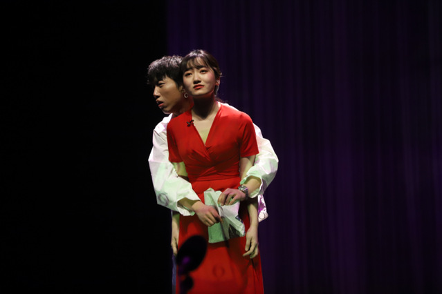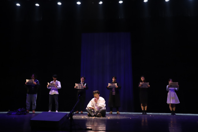 不得不说的是,在台上表演的员工并非因表演功底录取,只是上过一年的表演训练,在表演方面几乎为零基础。但同学们不畏艰难、刻苦努力,导演课任课老师方虹也不辞辛劳,与同学们通宵达旦地反复排练。最终,大家克服了在舞台上的种种困难,将这次汇报展演完整地呈现了出来,一同交上了这份还算令人满意的答卷。