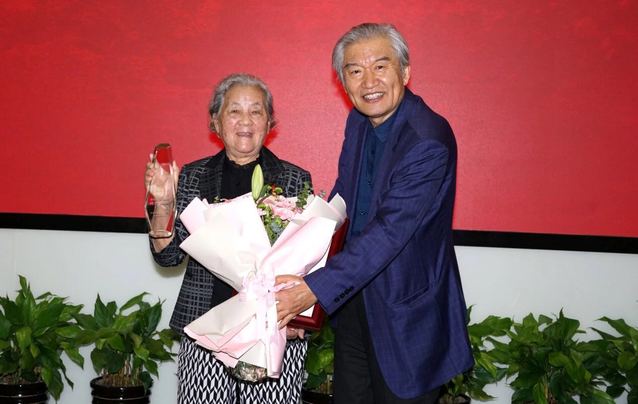 王静珠的丈夫、著名表演、导演艺术家、电影《董存瑞》中董存瑞的扮演者张良作为家属陪同来到典礼现场一起见证并发表讲话,夫妻俩的发言中无不流露出属于他们的那份相濡以沫、相知相守的珍贵情感。