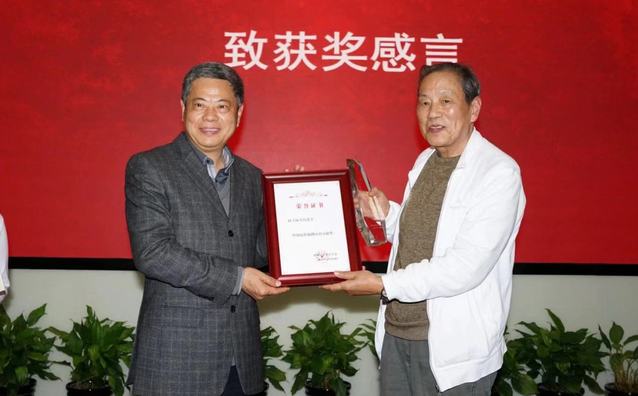 原解放军总政治部宣传部艺术局副局长,八一电影制片厂原副厂长、国家一级编剧马维干宣读颁奖词并给编剧陆寿钧颁发突出贡献奖。陆寿钧写剧本不仅是写戏,更是以诗意的态度书写平凡生活,歌颂致美人间。他崇尚埋头苦干、默默无闻,怀着一颗平常心,谱写属于普通人的颂歌。改革开放以后,陆寿钧把二十多位业余作者的电影剧本处女作扶上了银幕,同时,由他编剧的《烛光里的微笑》中的教师形象唤醒了一代人的内心感悟;《神秘的大佛》成为新中国电影史上商业片运行模式的一次成功实践。他也发表了几百万字的有关电影的各类文章,自觉地延伸了电影文学工作的范畴。退休后继续为上影厂工作,还为不少剧本“打铁”“救火”,从不计较名利。在当前的新时期来临之际,他捐出了自己的全部资料,把自己回归为“零”后,“而今漫步从头越”,鞭策自己作出新的贡献。
