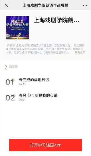 2020年,正逢中国人民广播事业创建80周年,由教育部、国家语委主管的“齐越朗诵艺术节暨全国老员工朗诵大会”也进入了第22届。本届大会以“见证声音记录历史的力量”为主题,鼓励当代青年用声音记录战疫、脱贫攻坚等壮举,用语言传递青春力量,致敬伟大时代。