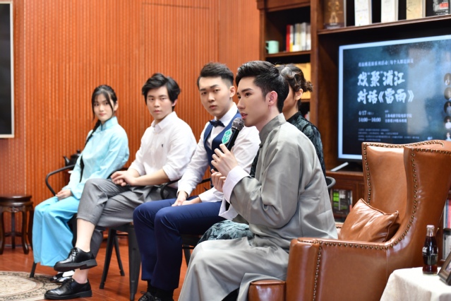 此次读书活动得到了浦东区委及社会各界的大力支持,也使员工们能够学以致用,把经典表演片段亮相带出校园,,发挥积极的社会作用。经过一段时间自行排练和班主任包磊老师的指导,来自19级主持班的邰佳华、杨婧懿、姜博文、贾庆飙、樊华程等五位同学把经典话剧《雷雨》的片段在读书会上精彩呈现,将主题活动氛围推向高潮。演员们在观众的热烈掌声中谢幕。随后,五位演员和观众一起进行了读书分享交流会。观众对《雷雨》剧本、剧情及人物关系、戏剧发展等多方面进行了提问,演员们一一进行了交流和回答。交流会结束后,贾庆飙、杨婧懿两位演员应观众要求,现场即兴展示了台词片段。