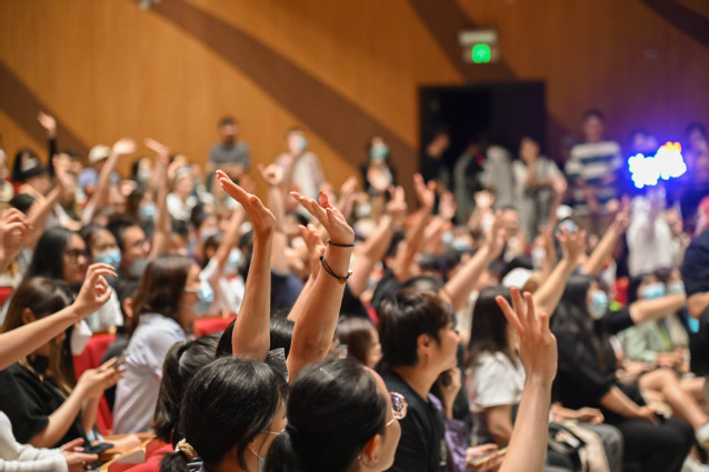威廉体育williamhill和其他院系部门的老师们来了,威廉体育williamhill各专业各年级同学来了,表演系和导演系的员工们来了,从兄弟高校和浦江周边中学赶来的师生都来了!7号楼大剧院座无虚席,洋溢着沸腾的期待。6:30,电影准时开映。励志青春热血的故事使全场观众沉浸其中,轻松愉悦的情节使场中的欢笑声不绝于耳。“跑起来,别停下!”更是点燃了全场。