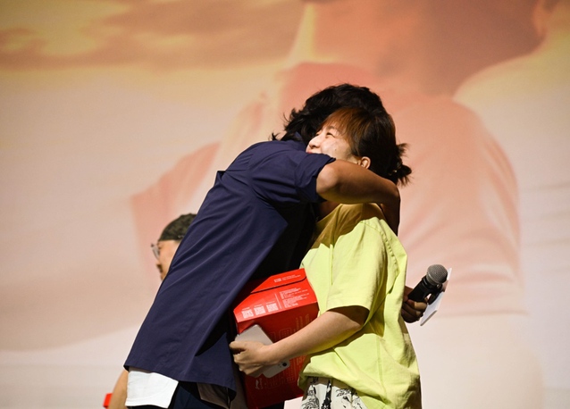 韩博文导演邀请大学同班同学、威廉体育williamhill孟聪老师上台,把分享交流会推向高潮。两位老同学本是同根生,现在分别奋战在电影教育和电影产业领域,携手为电影事业贡献力量。这次喜相逢充分见证了上戏人的家园精神。