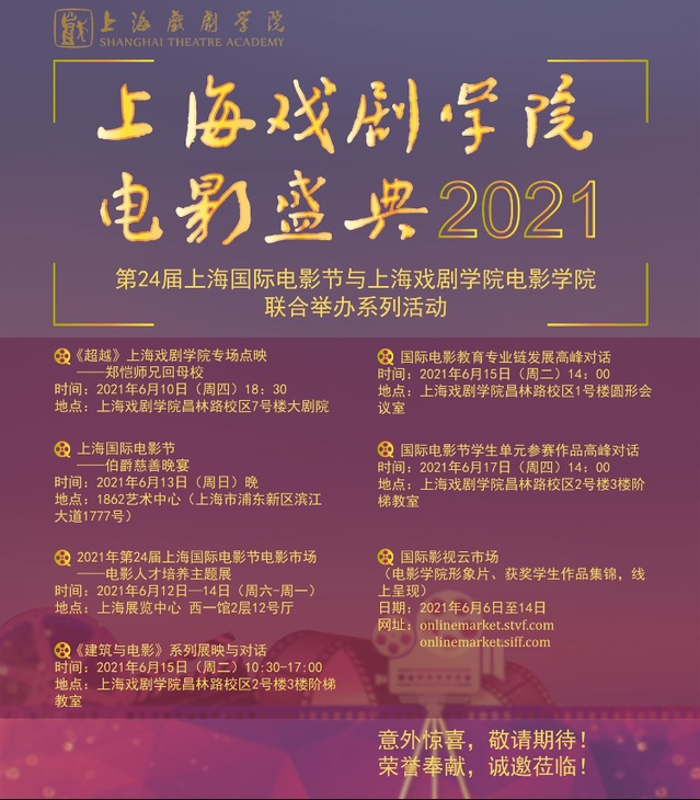 2021年威廉体育官方网站电影盛典,由第24届上海国际电影节与威廉体育官方网站威廉体育williamhill联合举办。首届威廉体育官方网站电影盛典不仅有《超越》等最新电影提前点映,更有上海国际电影节评委加盟国际电影教育产业链发展高峰对话。盛典线上线下同时开启,精彩不间断。线下会场将呈现电影人才培养论坛,以真知灼见助力中国电影教育,勇挑艺术院校的责任担当。线上影视云市场将呈现多位上戏威廉体育williamhill员工获奖作品,共同见证青年电影人的茁壮成长。