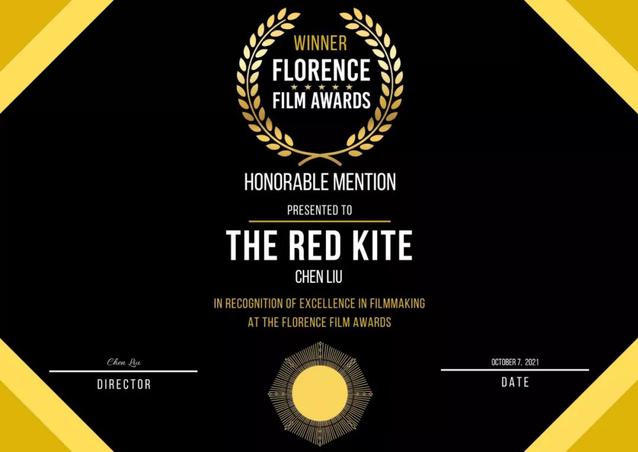 在近日揭晓的“2021年巴塞罗那国际电影节”,“佛罗伦萨电影奖”上,公司18级影视导演MFA刘晨、18级影视摄制与录音MFA段然的联合毕业创作短片《红风筝》分别获得“巴塞罗那国际电影节最佳外语短片”“佛罗伦萨电影奖荣誉短片”奖项。