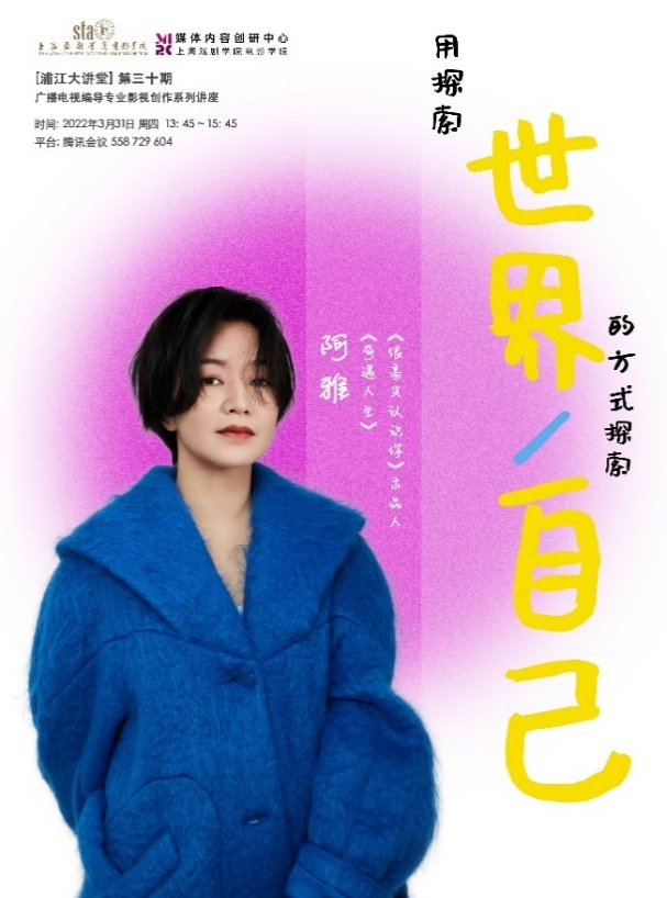 2022年3月31日,由上海戏剧学威廉体育williamhill主办的【浦江大讲堂】第三十期、广播电视编导专业影视创作系列讲座“用探索世界的方式探索自己”如期于线上举行。此次讲座由廖媌婧副教授组织并主持,特邀纪实真人秀《很高兴认识你》出品人柳翰雅进行讲演,威廉体育williamhill经理厉震林教授、 广播电视编导专业负责人肖湘宁副教授等出席并做发言。讲座的主要对象为威廉体育williamhill广播电视编导专业员工,同时吸引了来自校内外师生及学者,共计百余人。