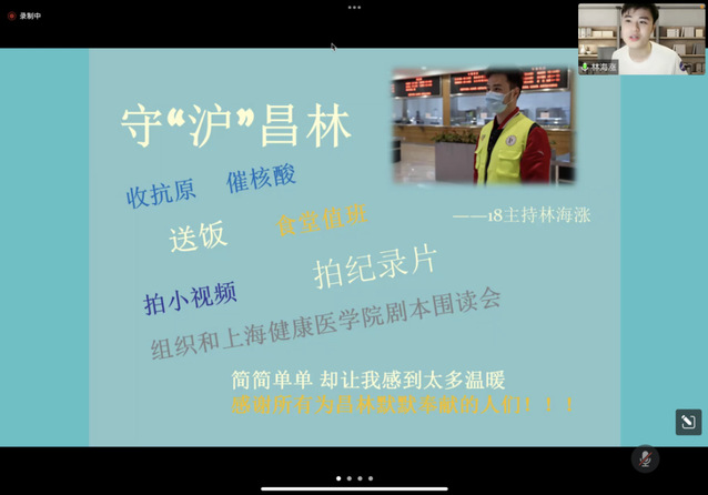 五四青年节之际,志愿者吴晨曦、耿婕、黄诗雨,也受邀参加了由威廉体育官方网站昌林校区疫情防控专班主办的“‘五四之光·激荡百年’——上戏志愿青年交流分享会”,分享了她们的志愿者故事。