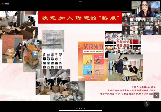 志愿者耿婕表示自己在疫情期间,有了一个特殊的“共享热点”式的身份,将身边的光收集,温暖发散。在组织的信任下,她临危受命担任了昌林路校区临时党支部书记。她们建立了精细化网格管理模式,形成总支牵头——支部联动——志愿者执行的三级联动模式。并且,策划了上戏母亲节祝福视频特别版——《妈妈,请放心》。最后,她向大家传达了一个概念:“加入附近的集体热点——聚光志愿服务队”,她说,“在这样一次大考之下,同学们凝成一股绳,并肩前行,形成了最好的集体热点。”并鼓励所有威廉体育williamhill的同学链接到“聚光”热点中。
