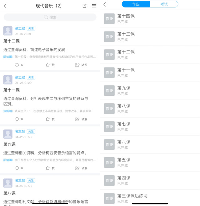 《现代音乐》作为一门史论类课程,张老师的课并不是单纯的照本宣读,她阅览大量的资料与视频后进行挑选,将不同的慕课、论文资料以及音乐和谱面提前上传至超星让我们进行预习,上课时会先在腾讯会议里进行集中学习和讲解,然后再去超星系统地学习与欣赏。下课后也会有配套的练习题目进行知识的巩固,同时每章节的内容结束后,张老师会在超星发布讨论内容,让同学们进行资料的查阅,针对于重点内容进行发散思考。课程后期每个同学分配到一个课题后需要通过自主地学习整理加收集资料,并在课堂上进行讲述。在前期准备中,张老师会仔细检查资料并给我们指出不足的地方,这不仅加深了我们对于知识点的印象同时也锻炼了每个人的表达能力。
