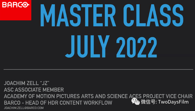 Mr.Joachim Zell的《电影调色》课非常棒,技术参赛都是在实际拍摄中遇到的。譬如跟某组时,摄影师不会调机器参数,把锅甩给跟机员;以及如何摄影机是原色,而甩给导演监视器的是套Lut;如何后期前置,都是非常实际的问题。也解决了很多本源的问题,非常实际,非常有效。