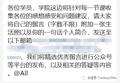 每天课程结束后都会有课程感受的征集