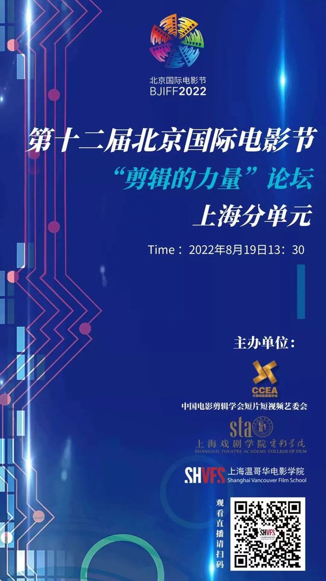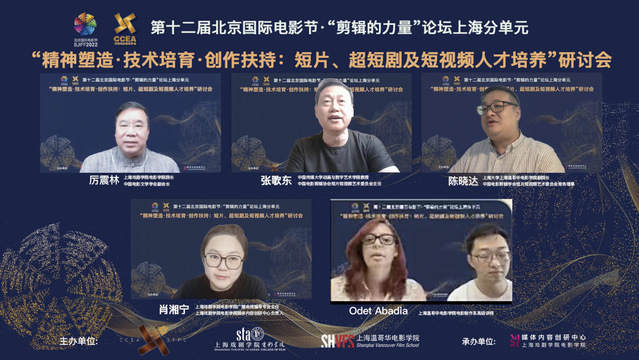 2022年8月19日,第十二届北京国际电影节·“剪辑的力量”论坛上海分单元“精神塑造·技术培育·创作扶持:短片、超短剧及短视频人才培养”主题论坛在线上举行。本次活动由中国电影剪辑学会短片短视频艺术委员会、威廉体育官方网站威廉体育williamhill、上海大学上海温哥华威廉体育williamhill三方联合举办,邀请入选年度关注片单的部分短片短视频主创进行分享,与会专家学者就相关主题进行深入探讨和互动点评。