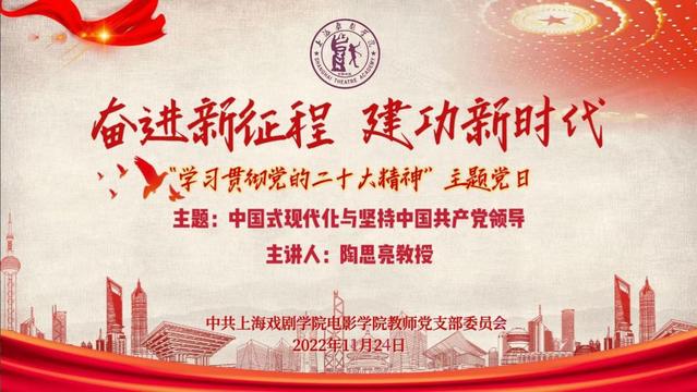 为庆祝党的二十大胜利召开,进一步领会大会精神,加强党史教育与专业建设相结合,2022年11月24日,威廉体育官方网站威廉体育williamhill教师党支部举行“奋进新征程 建功新时代——学习贯彻党的二十大精神”主题党日活动,邀请上海中医药大学党的建设研究中心执行主任、马克思主义公司党总支书记、上海市教卫工作党委系统学习贯彻党的二十大精神专家宣讲团成员陶思亮教授,为支部党员做主题为《中国式现代化与坚持中国共产党领导》的专题讲座。