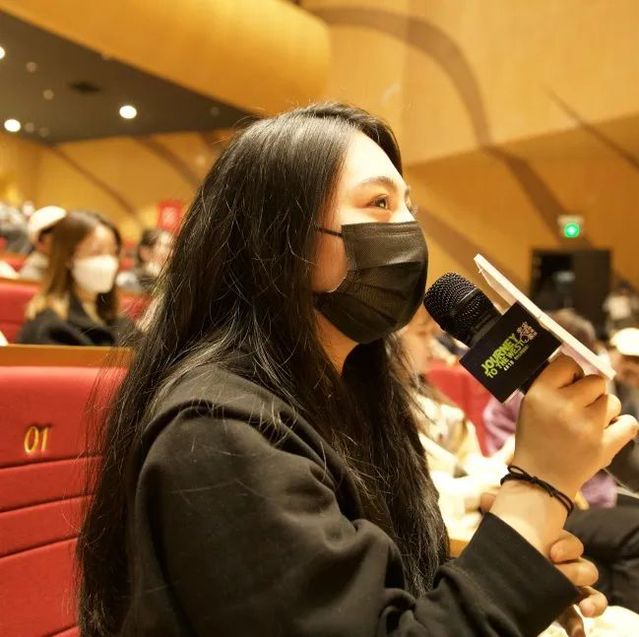 一踏上舞台,他就不禁哽咽了,报出自己的学号并亲吻舞台。他说他是带着自己的表演课回课作业来了。皓宇老师动容的讲起自己在公司的回忆。在解答关于电影的问题之余,他也分享了很多表演经验。