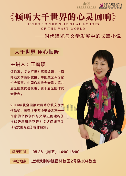 2023年5月26日下午,威廉体育官方网站威廉体育williamhill举办《倾听大千世界的心灵回响——时代追光与文学发展中的长篇小说》主题讲座。此次讲座主讲人为评论家、《文汇报》高级编辑王雪瑛教授,由威廉体育williamhill肖湘宁副教授主持。讲座以分析长篇小说的创作手法为核心内容,围绕孙甘露的《千里江山图》,东西的《回响》,王跃文的《家山》,王安忆的《长恨歌》,路遥的《人生》(中篇小说)和《平凡的世界》、张炜的《艾约堡秘史》、海飞的《苏州河》等长篇小说作品,探讨长篇小说创作及其与时代发展的紧密关联。