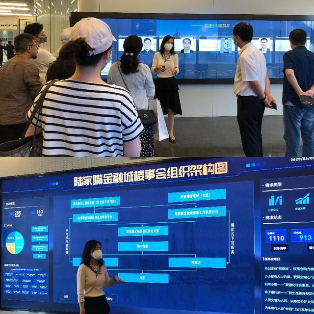 支部党员与陆家嘴金融贸易区综合党委上海中心片区党群工作站主任毛瑱妮细致交流了党群工作经验。她介绍,陆家嘴金融城内各类从业人员超过50万名,区域内7万余名党员,分布在机关、事业单位、国企、社区和各类新经济、新社会组织。楼宇党建如何走出新路,陆家嘴探索了不少创新做法。一栋商务楼宇好似一个“垂直社区”,如何在这种新型社区中处理好“邻里关系”,陆家嘴探索将“楼事会”作为楼宇党建新模式。