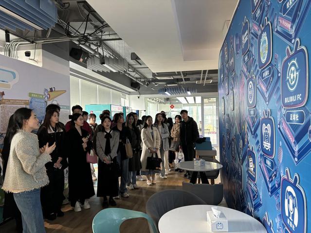 2024年4月11日,驻校艺术家曹可凡、金炜二位老师带领上戏主持专业的同学们前往位于上海市杨浦区的Bilibili公司参观交流,