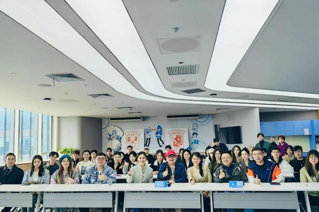 随后,驻校艺术家和同学们来到位于公司顶楼的会议室,与各部门的工作人员进行座谈交流。大家对B站的发展历程以及主营业务有了进一步的了解。B站对上戏主持专业同学们的到访表示欢迎,并希望同学们毕业后能来到B站工作。在交流过程中,曹可凡、金炜、左育三位老师先后提问,问题涉及平台流量推送机制、媒介变迁中的内容创作、Z世代的内容消费偏好、全媒体背景下播音主持专业人才培养转向等问题,现场交流互动气氛热烈。