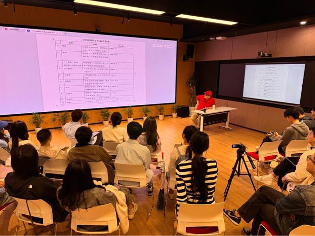 课程进行中,曹可凡老师播放了几段抖音账号中发布的《可凡倾听》片段,并向同学们展示了《可凡倾听》的抖音点击率。在总结《可凡倾听》切片内容在短视频平台的数据后,同学们发现后台数据表现的好坏与该片段中细节呈现的多少有密切联系。