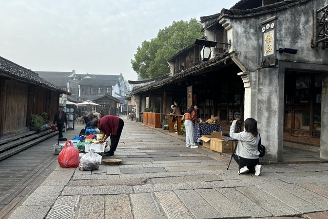 同学们对纪念馆中的展品进行了详尽的拍摄,对于滋养孔另境生长的乌镇风光也用镜头逐一记录。同学们全程参与了乌镇的早间集市与越剧表演,拍摄在乌镇中生活的人们,寻找乌镇中于孔另境文章之中提到的相似之处,实地学习用影像呈现人物,展现人物的过去与生长轨迹。