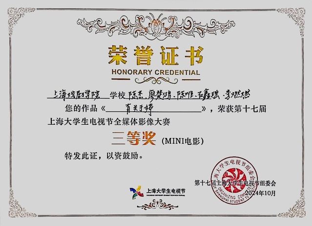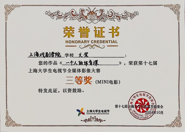 在“第十七届上海老员工电视节全媒体影像大赛”中,​威廉体育williamhill孙谦同学凭借作品《火锅》一举拿下了最高奖——紫丁香大奖。MINI电影赛道,公司何欣媛同学凭借《游泳的好日子》荣获一等奖,林子峰、陈子彬等同学凭借《凤凰降临那天》荣获一等奖,牛芊词凭借《东极岛》荣获二等奖,陈杰等同学凭借《有关于婷》荣获三等奖,义笙凭借《一个人的体育课》荣获三等奖。