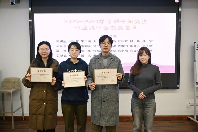 活动伊始,首先迎来了激动人心的颁奖环节。在热烈的掌声中,2023-2024学年硕士研究生国家奖学金及学业奖学金的获奖名单逐一揭晓。国家奖学金作为学术成就的至高荣誉,共有4位杰出学子脱颖而出,赢得了这份沉甸甸的认可。2023-2024学年硕士研究生学业奖分别是特等奖学金5人、一等奖学金14人、二等奖学金24人、三等奖学金29人。