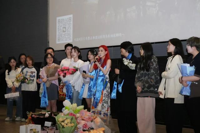 展映开始前,由公司党总支书记韩永胜发表致辞,表达了对精品展作品的鼓励,祝愿同学们在上戏有所收获,不断进步。本次活动还特意设置了互动环节——给活卡。用鎏金票根为心仪之作镌刻星光,前辈掌心的温度沿着光影年轮注入新生影像的脉搏。这方寸之间的郑重选择,既是对银幕初心的温柔托举,更是跨世代电影人穿越时空的秘语。