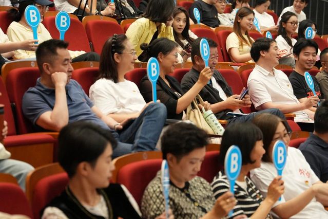 张大鹏老师引导现场全体观众全情投入到电影编导系廖媌婧老师策划的以《人民的名义》剧情为蓝本的互动视频《最后的抉择》的剧情当中,通过现场举牌实时选择,通过不同人生道路与党性抉择的鲜明对比,生动展现了廉洁自律与腐化堕落的天壤之别,彰显了坚强的党性决定人生走向这一深刻道理!