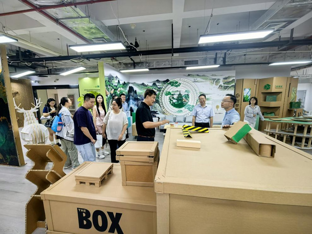 第二站,师生们走进浦江智谷园区,参观多家优秀企业。其中,纸享家以“可回收资源再利用”为核心,将纸质材料创新应用于文创、包装等领域,其环保理念与创意实践为同学们未来创新创业打开了思路;仕派鸣/匹有稷、合时安防等企业也分别展示了各自在品牌策划、安全技术等领域的特色成果。园区企业多元的业务方向与创新活力,为同学们打开了跨界思考的视野。