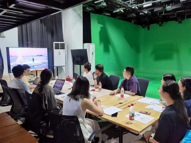 下午1点,师生一行抵达第一站V-T Studio上海鑫片场。企业负责人通过宣传片展示了其在影视制作领域的技术实力,重点介绍了绿幕拍摄技术的应用成果。从虚拟场景搭建到实拍与特效的融合案例,生动呈现了影视工业化制作的流程,让同学们直观感受到前沿技术在创作中的实践场景。